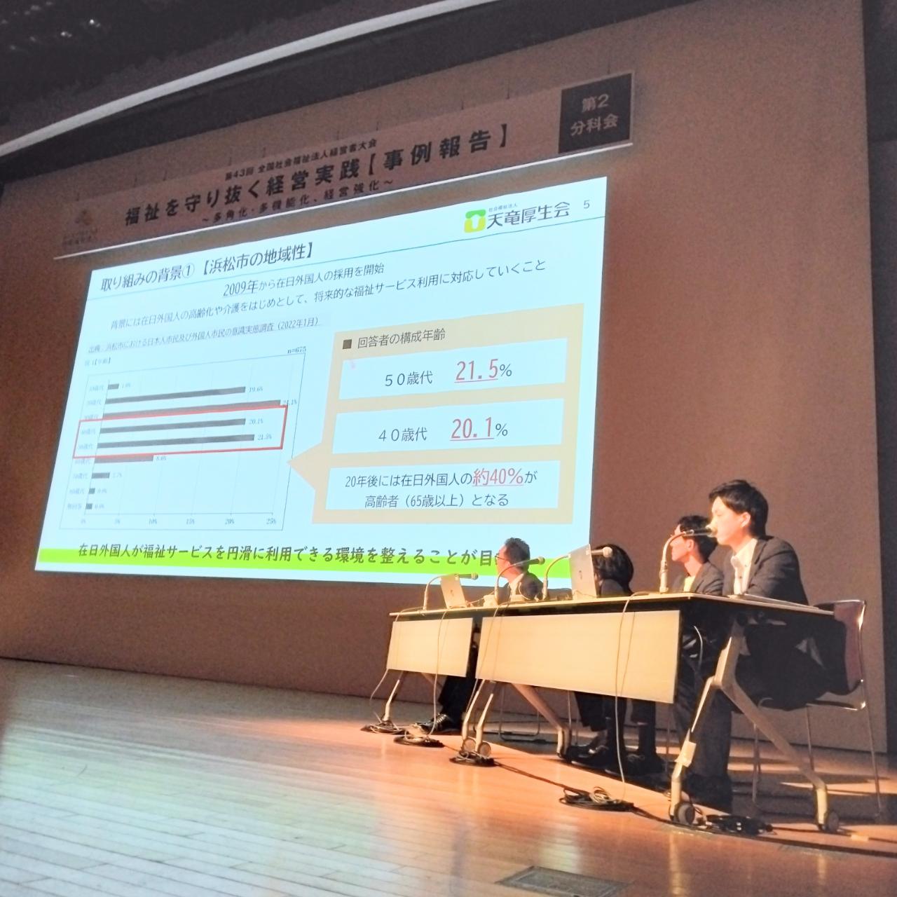 天竜厚生会における「外国人財採用」の取り組みについて発表しました。