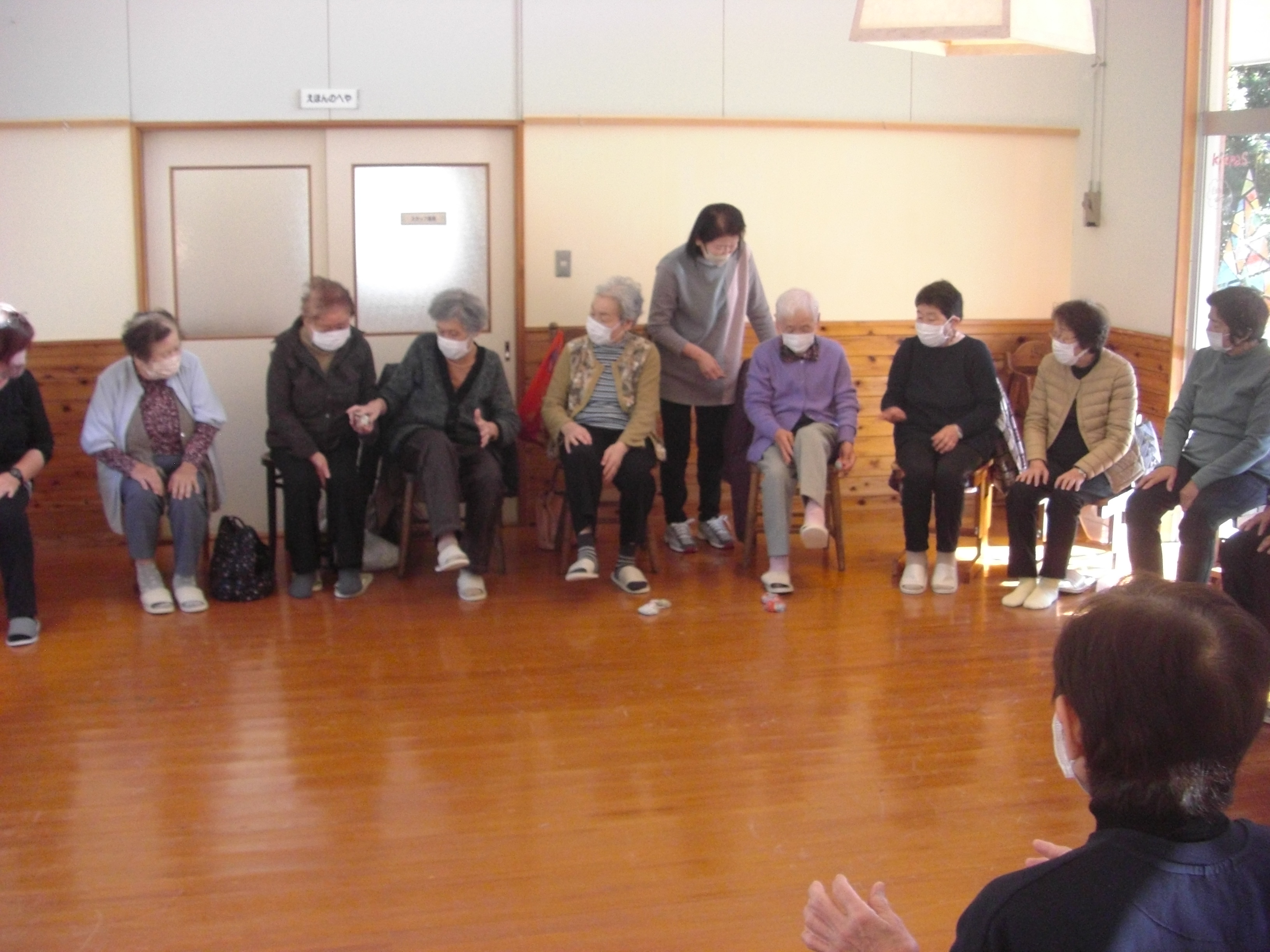 高齢者サロン「どっこいしょ」の創設者であり、介護予防運動指導員の川島律子様を講師として招き、新聞紙の棒を使った認知予防体操やボールやお手玉を使ったゲームを使って下肢機能の向上させるレクリエーションを実施しました。