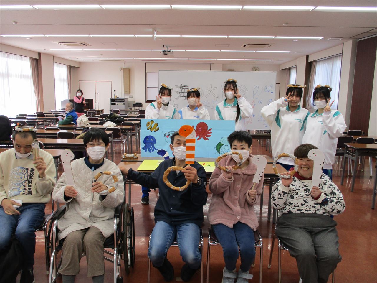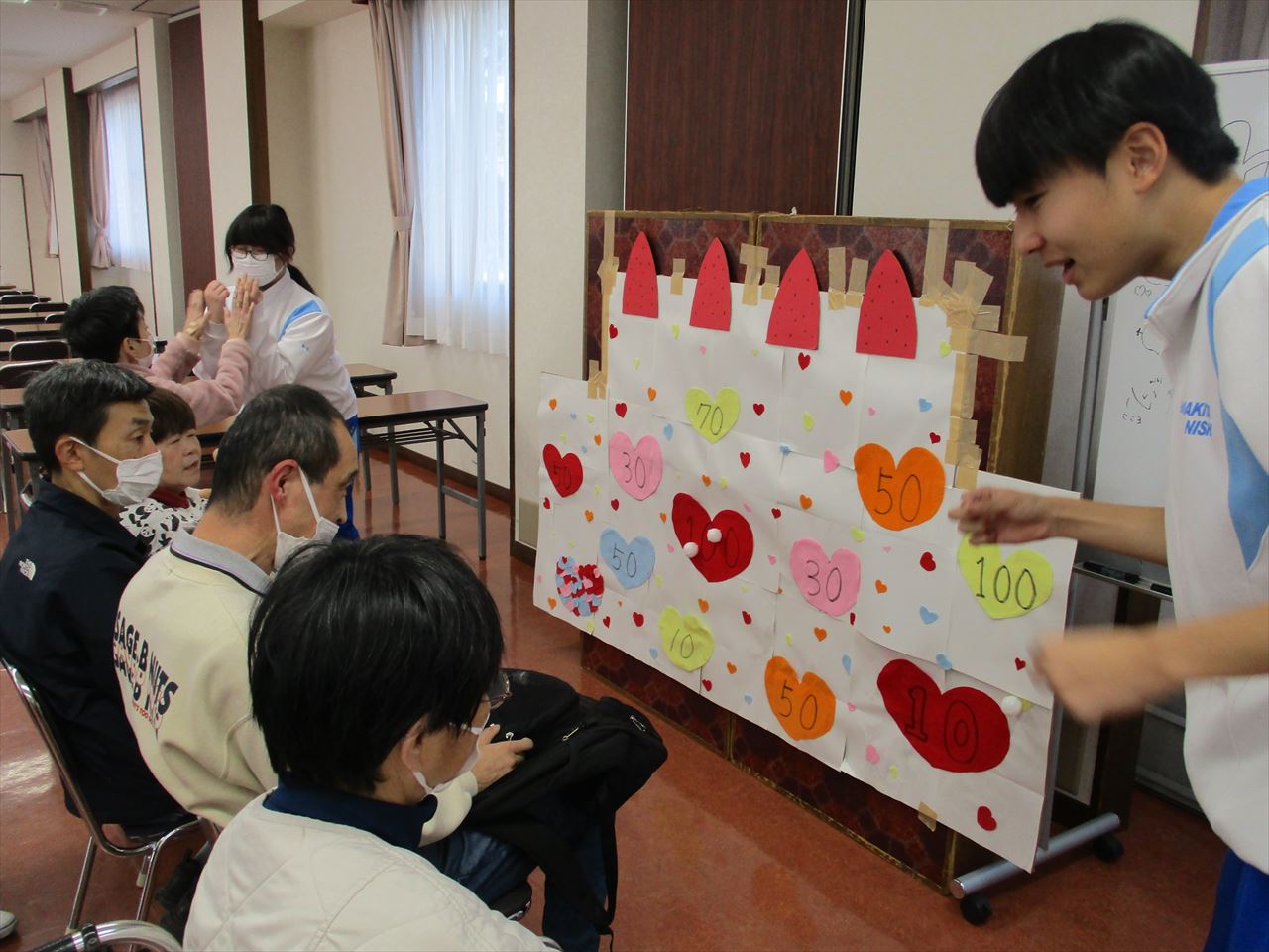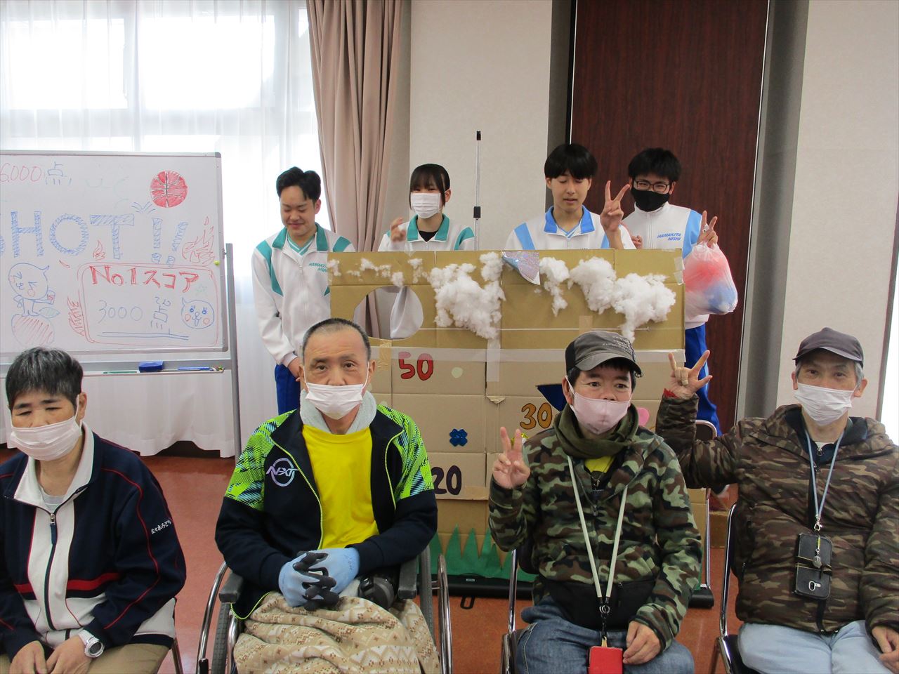 当日は、ご利用者と学生が一緒になって和気あいあいとした雰囲気の中、楽しい時間を過ごしました。ご利用者からは「楽しかった!」「これを考えたの?すごいね!」といった声も聞かれ、学生との交流を深めることができました。