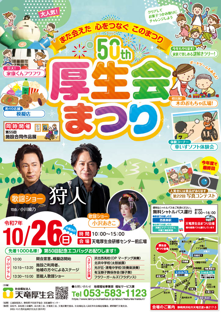 開催の3日前(10/23)に「厚生会まつりのお知らせ#3」にて、開催状況(実施・中止)についてお知らせいたしますので、随時ご確認ください。