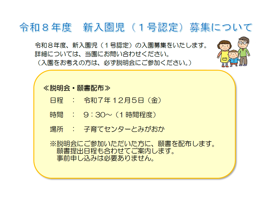 3.  >  【子育てセンターとみがおか】令和8年度新入園児(1号認定)入園説明会について